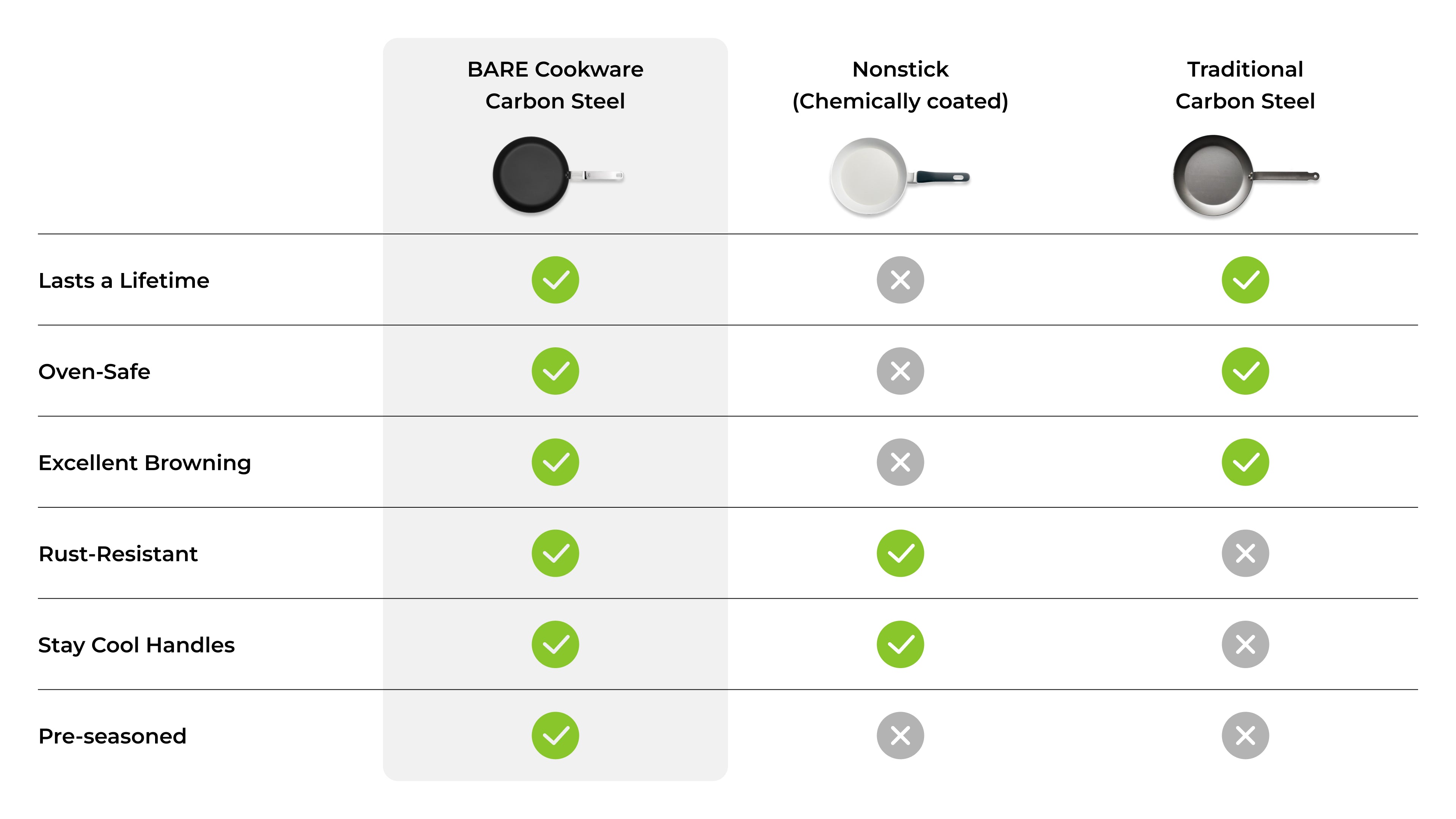 Use every day, for the rest of your life! We’ve strategically engineered this carbon steel set to not only perform better with repeated use but also last a lifetime. You’ll never have to throw a pan away again!