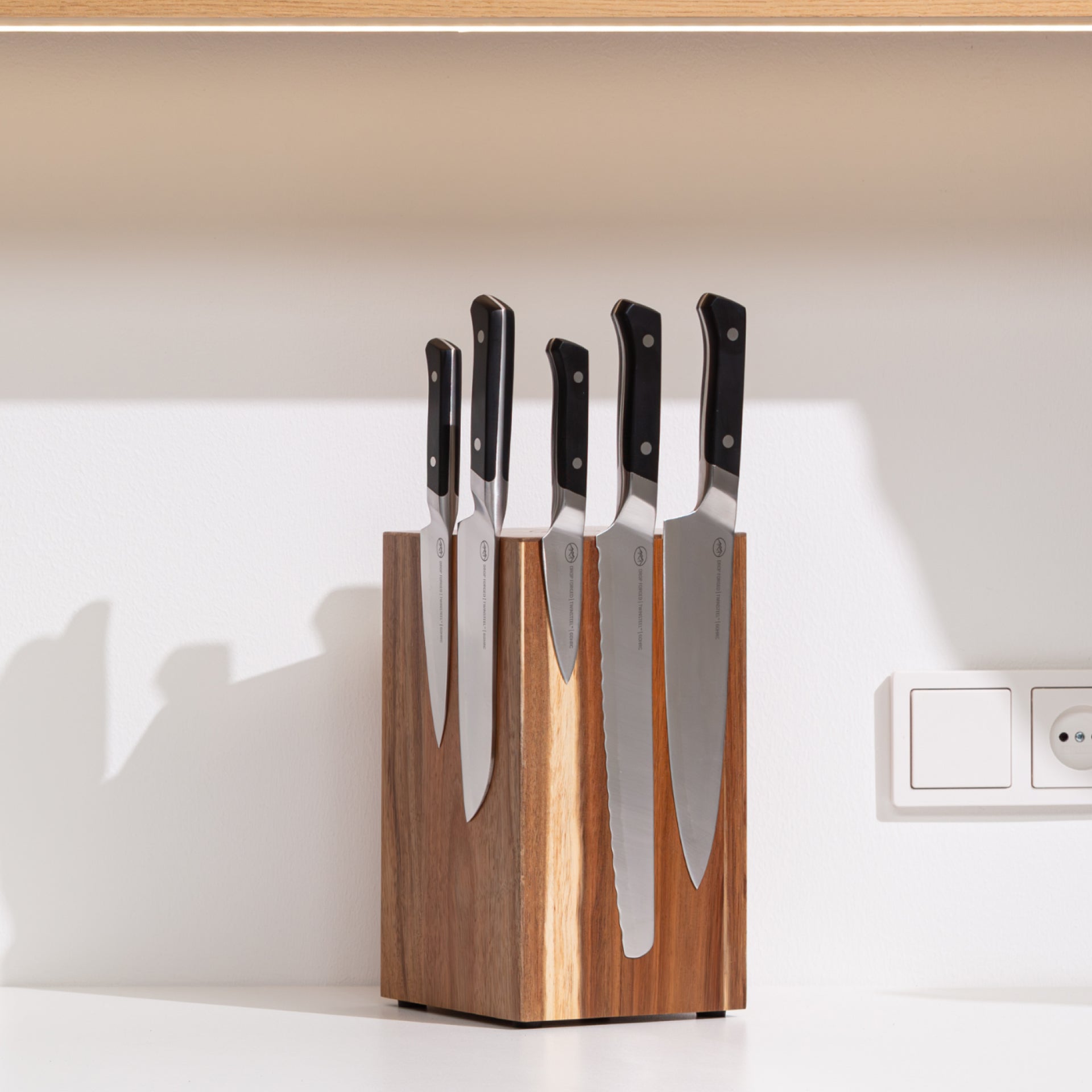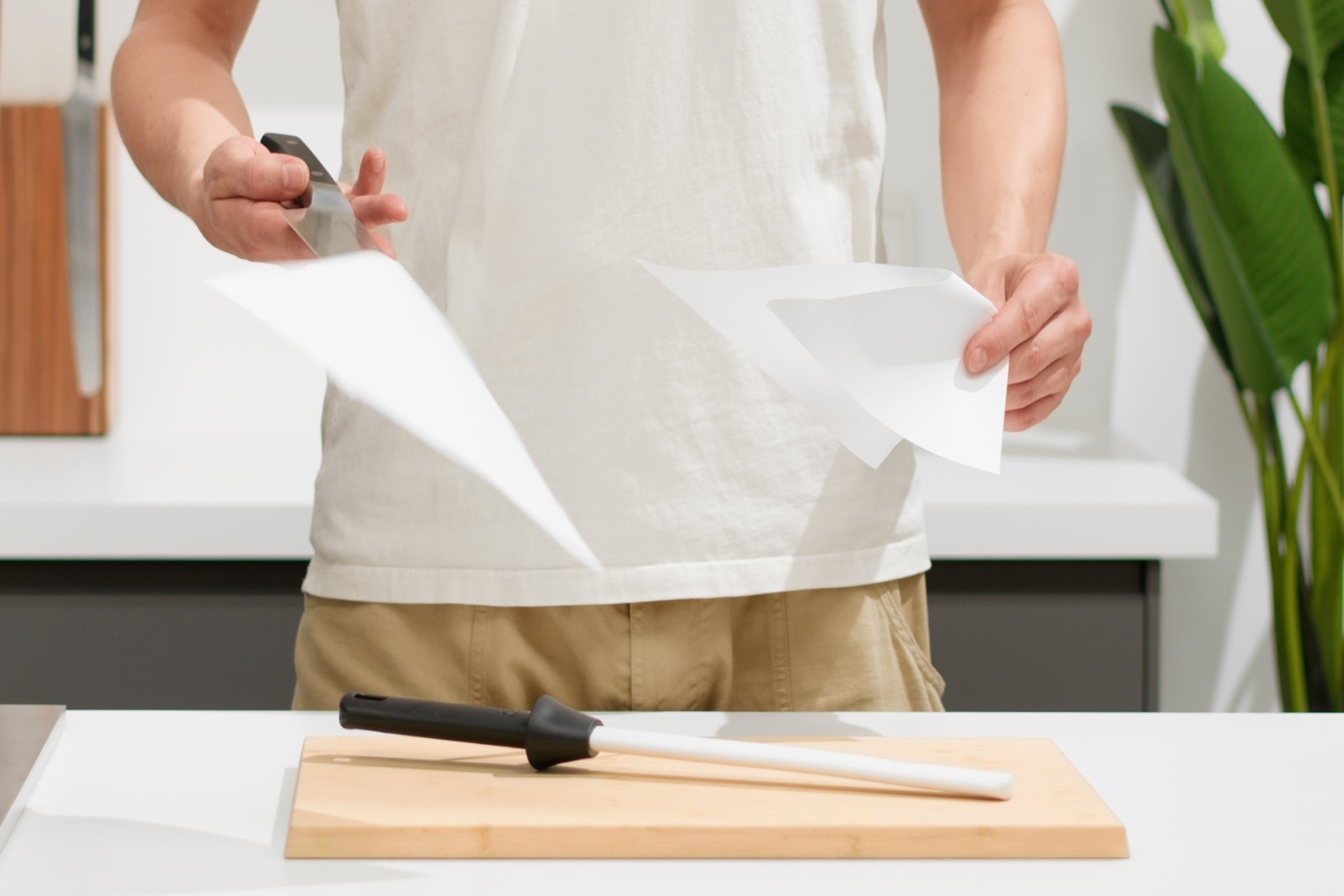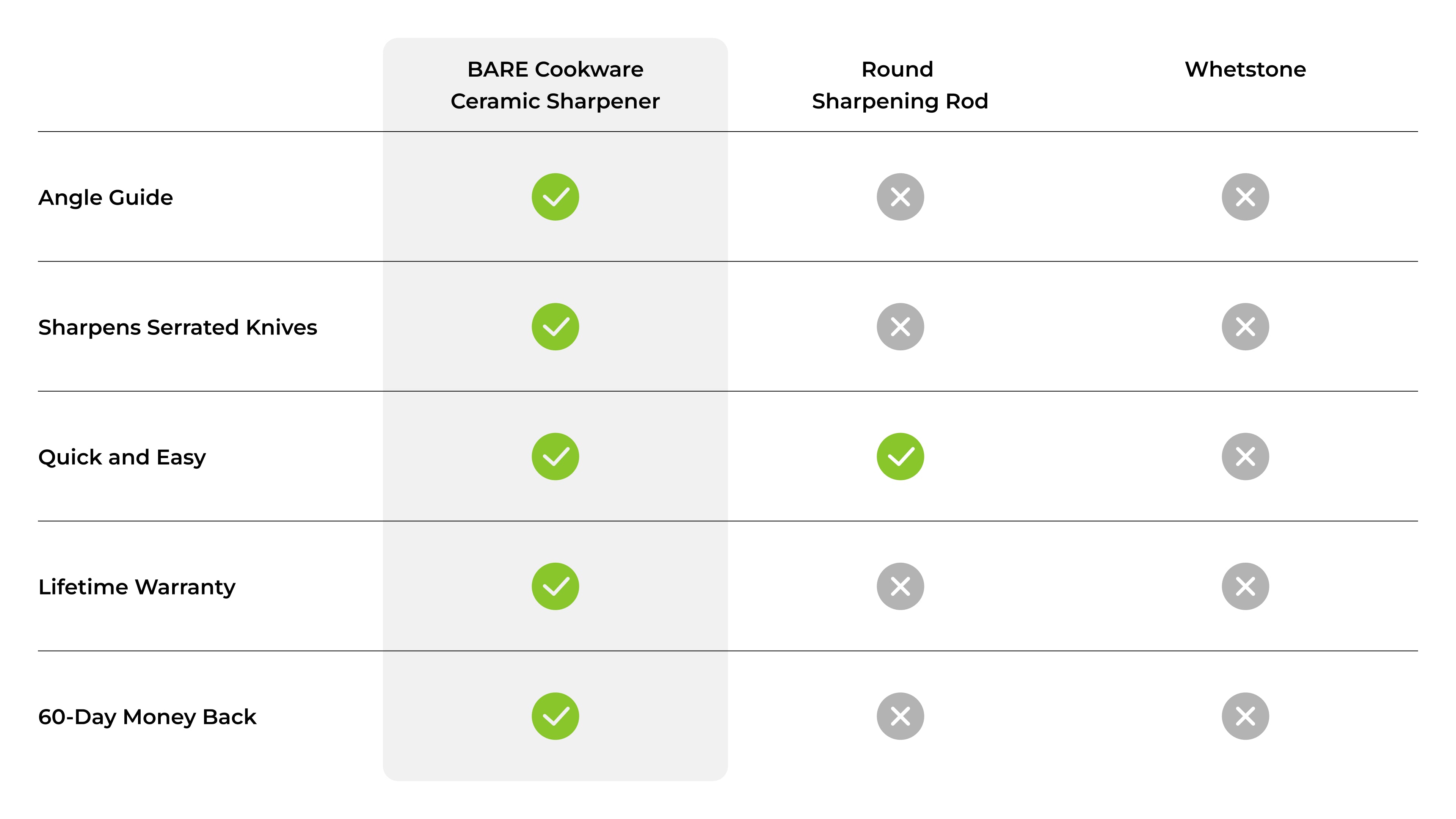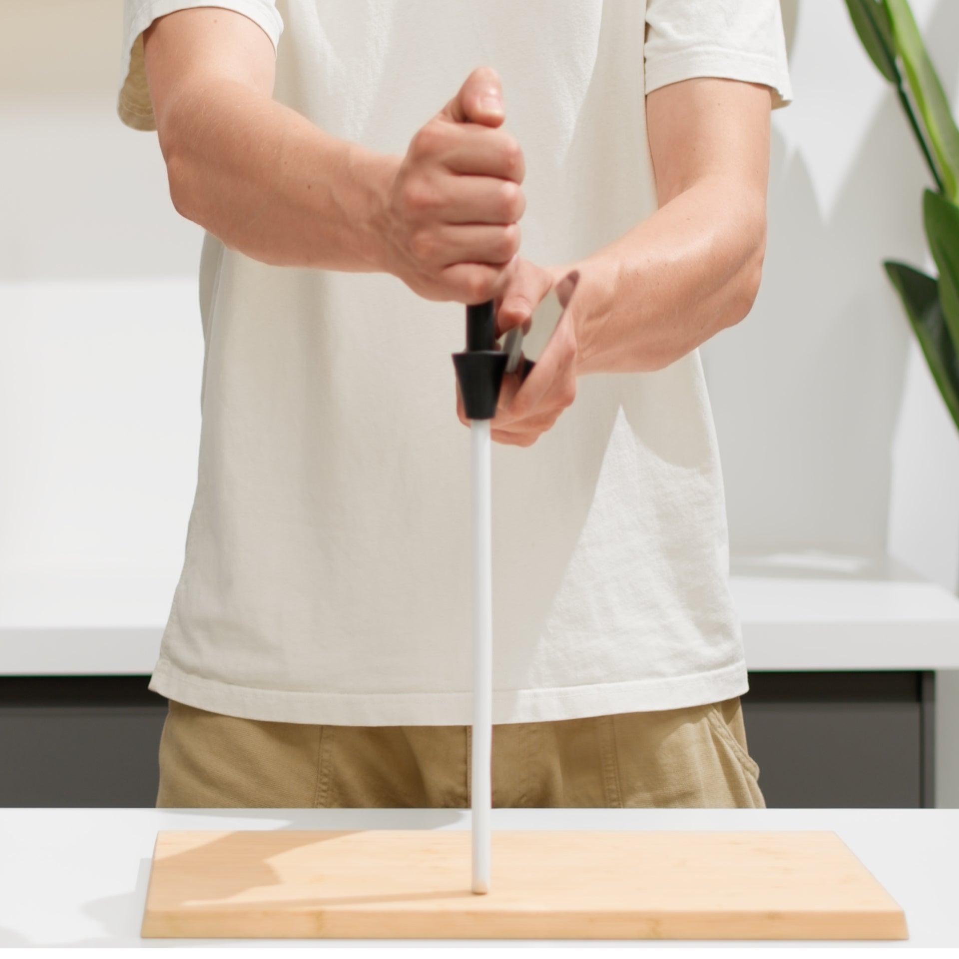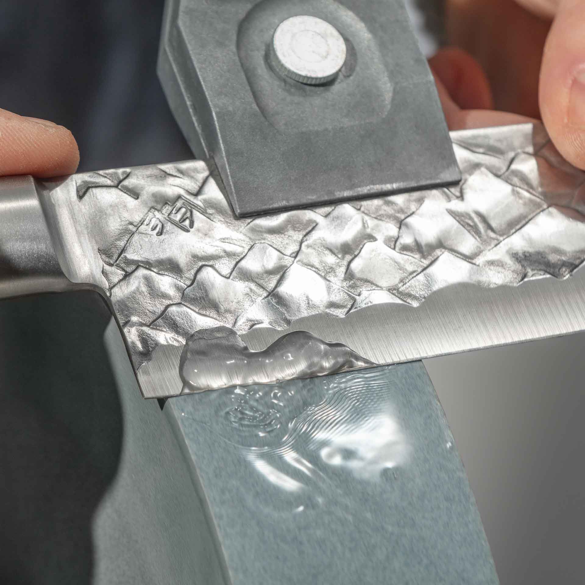 Eventually even high-end steel goes dull. To sharpen extremely hard steel, you need an even harder material: ceramic. Our 2000 grit sharpener has a built-in angle guide. It's so easy, everyone can do it. With an oval cross section it sharpens any knife, even serrated knives!